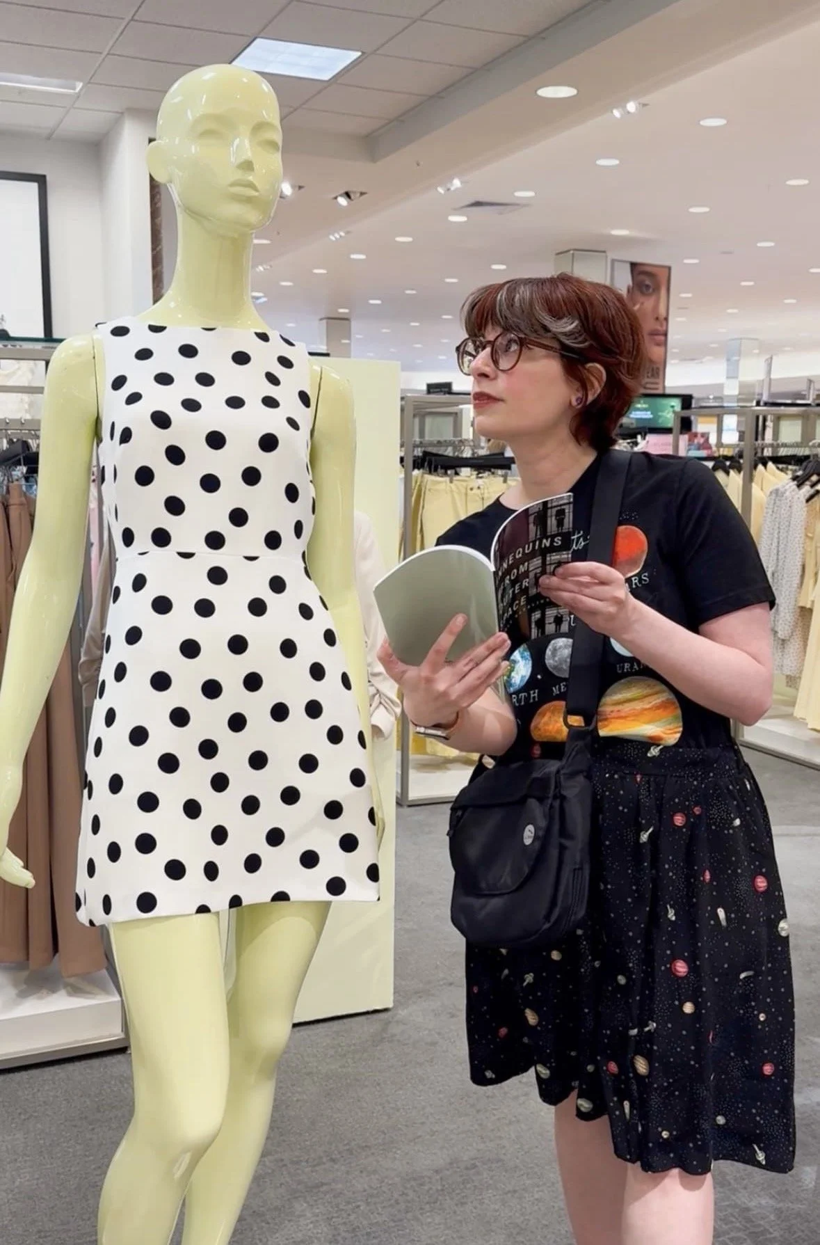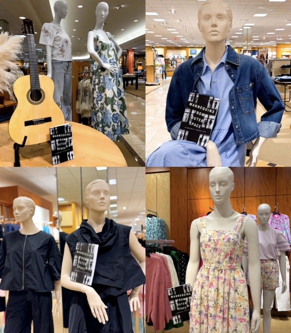 As soon as my author copies arrived, I ran out to a local department store to build an IG Reel for Mannequins from Outer Space. Gut instinct took me to what turned out the perfect store for this, because for some reason, they had at a dozen or more different types of mannequins throughout the two floors. How? Why? I’ll never know, but I was so glad. You can watch the IG Reel I made here, but I’ll share some of my favorite photos I took from that outing:
