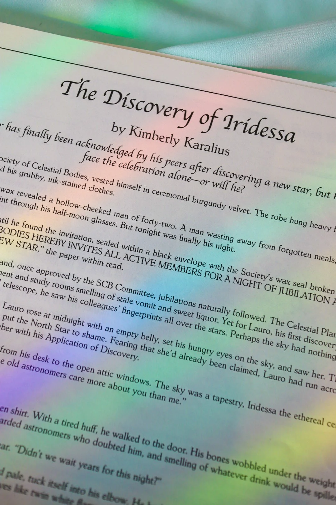 “The Discovery of Iridessa.” Maison Laurêve’s Timeless Ephemera print newspaper, Midnight at the Alchemist’s Apothecary Issue, May 2025.